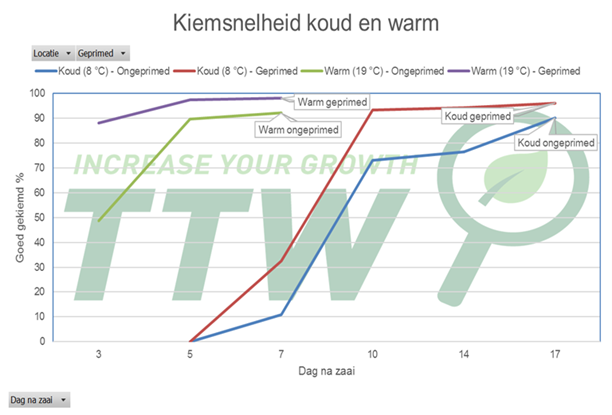 Figuur 1. Kiemtesten geprimed en ongeprimed zaaizaad cichorei